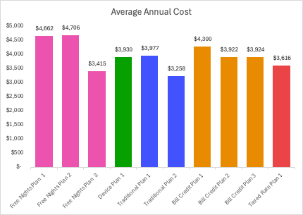 Our research indicates that many consumers lack the necessary tools and understanding to accurately compare these plans, leading to suboptimal choices and potentially higher electricity bills. For instance, 50% of survey respondents selected a time-of-use plan (Free Nights & Weekends) believing it would save them money. However, as our study concluded, selecting this plan would cost the average consumer over $1,400 more than if they had chosen the plan calculated to have the lowest rate for their home. The consumer would need to change their energy usage habits to save with the Free Nights and Weekends Plan.